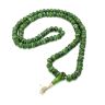 Очень красивые традиционные тибетские четки из окрашенной в интенсивный зеленый цвет кости яка с инкрустацией медью и минералами. Костяные четки, как правило, используются для тантрических практик, особенно связанных с гневными йидамами.