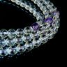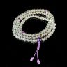 Очень красивые четки, собранные в соответствии с буддийской традицией из прозрачного горного хрусталя. В четках 108 бусин, основные бусины четок диаметром 7 мм. Разделители и гуру-бусина выполнены из аметиста диаметром 8 и 10 мм. Разделители выделены фигурными колечками из светлого металла.
