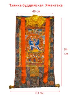 На этой танке изображен Ямантака, также известный как Ваджрабхайрава. Его имя переводится, как «Сокрушающий Владыку Смерти», он является гневным проявлением бодхисаттвы Манджушри и одним из йидамов и дхармапал в буддизме Ваджраяны. Также Ямантака считается одни из главных покровителей школы гелуг тибетского буддизма.