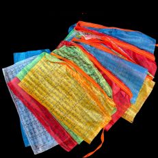 Гирлянда ярких флажков Лунг-та, напечатанных на искусственном шелке. На гирлянду длиной 5,5 метров нашиты 20 флажков 24х14 см.