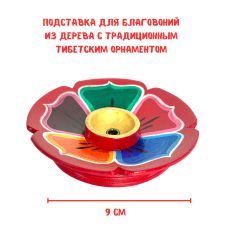 Деревянная подставка для благовоний, выполненная вручную в форме стилизованного цветка лотоса и разукрашенная традиционным тибетским орнаментом.
