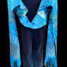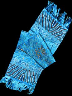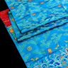 Очень красивый большой хадак из плотного атласа, на которых цветными и золотыми нитями вышит традиционный буддийский орнамент в виде облаков, волн и летящих драконов. Драконы в буддийской символике олицетворяют небо, жизненную силу и служат перевозчиками высших существ. Этот хадак можно подносить учителям, украшать им статуи, использовать как алтарное покрывало.