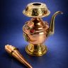 Буддийский ритуальный сосуд бумпа, с венчиком-воронкой для наливания воды. Бумпа выполнена в форме изящного кувшина из меди и латуни. Украшена рельефными накладками из латуни и цветными камнями. Воронка для наливания воды также используется как подставка для павлиньего пера — традиционного аксессуара бумпы (перо продается отдельно).