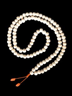 Очень легкие, почти невесомые, эти буддийские четки сделаны из дерева туласи (базилика тонкоцветного), священного растения в индуизме, широко используемого в аюрведе. Вайшнавы поклоняются дереву туласи, как воплощению богини Лакшми, принявшей форму растения. На каждой бусине четок выгравирована мантра ОМ МАНИ ПАДМЕ ХУМ.