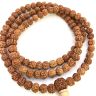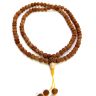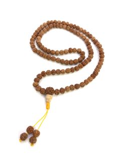 Буддийские четки с бусинами из семян дерева рудракши. В четках 108 бусин, диаметр бусины 8 мм. Четки собраны на прочный нейлоновый шнур желтого цвета, который завершается узлом Махакалы — одного из главных защитников буддизма. Длина четок около 72 см. Гуру-бусина выполнена из крупной рудракши, ступка — из дерева акации. Четки легкие, изящные, подойдут на мужскую, женскую и даже детскую руку.