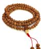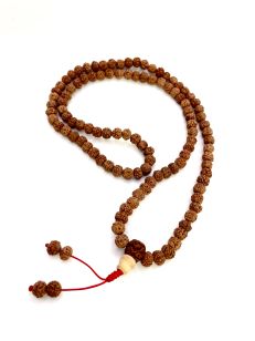 Буддийские четки с бусинами из семян дерева рудракши. В четках 108 бусин, диаметр бусины 8 мм. Четки собраны на прочный нейлоновый шнур красного цвета, который завершается узлом Махакалы — одного из главных защитников буддизма. Длина четок около 72 см. Гуру-бусина выполнена из крупной рудракши, ступка — из дерева акации. Четки легкие, изящные, подойдут на мужскую, женскую и даже детскую руку.