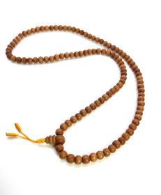 Буддийские четки с бусинами из непальского сандала (растение семейства санталовых) с пропиткой натуральным маслом сандала белого. Обладают тонким приятным ароматом. В четках 108 бусин, диаметр бусины 6 мм. Четки нанизаны на прочный нейлоновый желтого шнур, который завершается узлами Махакалы — главного защитника буддизма. Длина четок — 64 см. Четки легкие, достаточно миниатюрные, подойдут на мужскую, женскую и даже детскую руку.