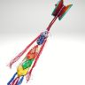 Буддийский ритуальный барабан Дамару в форме ромба, из древесины гималайской акации (дерево sandang), кожи и ткани. В комплект входит хвост с кистями и плотный футляр из ткани. Размер мембраны 11,5х13 см, длина хвоста (без кистей) 45 см. Легкий, очень звонкий дамару с отличным звуком.